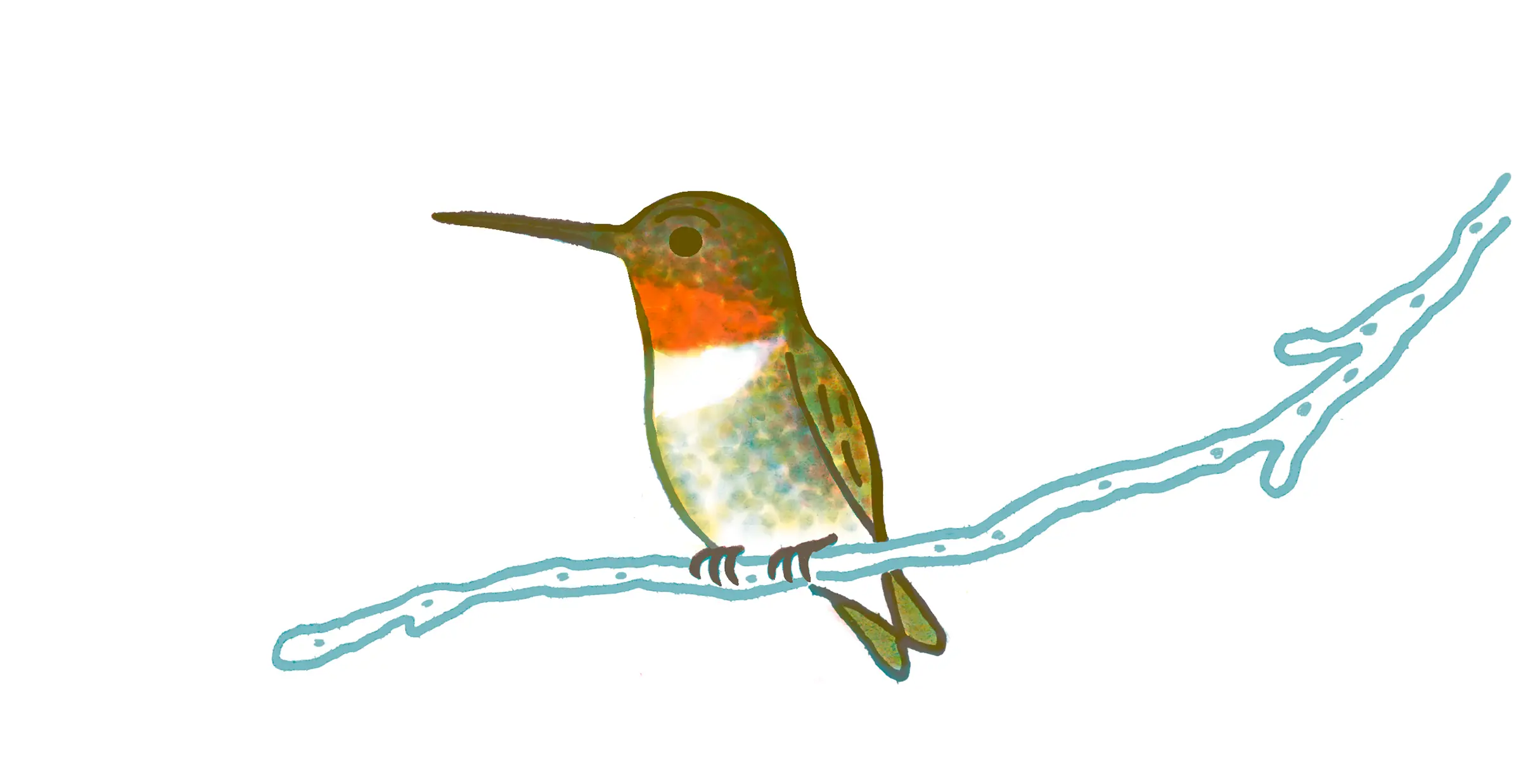 The only hummingbird species that breeds in eastern North America, the male has ruby colored throat feathers, while the female is a uniform light gray below and iridescent green on top. They produce a buzzing sound with their wings and can be mistaken for bumblebees as their main source of food is nectar from red and orange elongated flowers, such as jewelweed. These birds are able to move in any direction, even backwards, and hover as if standing still, all at a moment's notice. Once the breeding season ends, they migrate south to Central America.